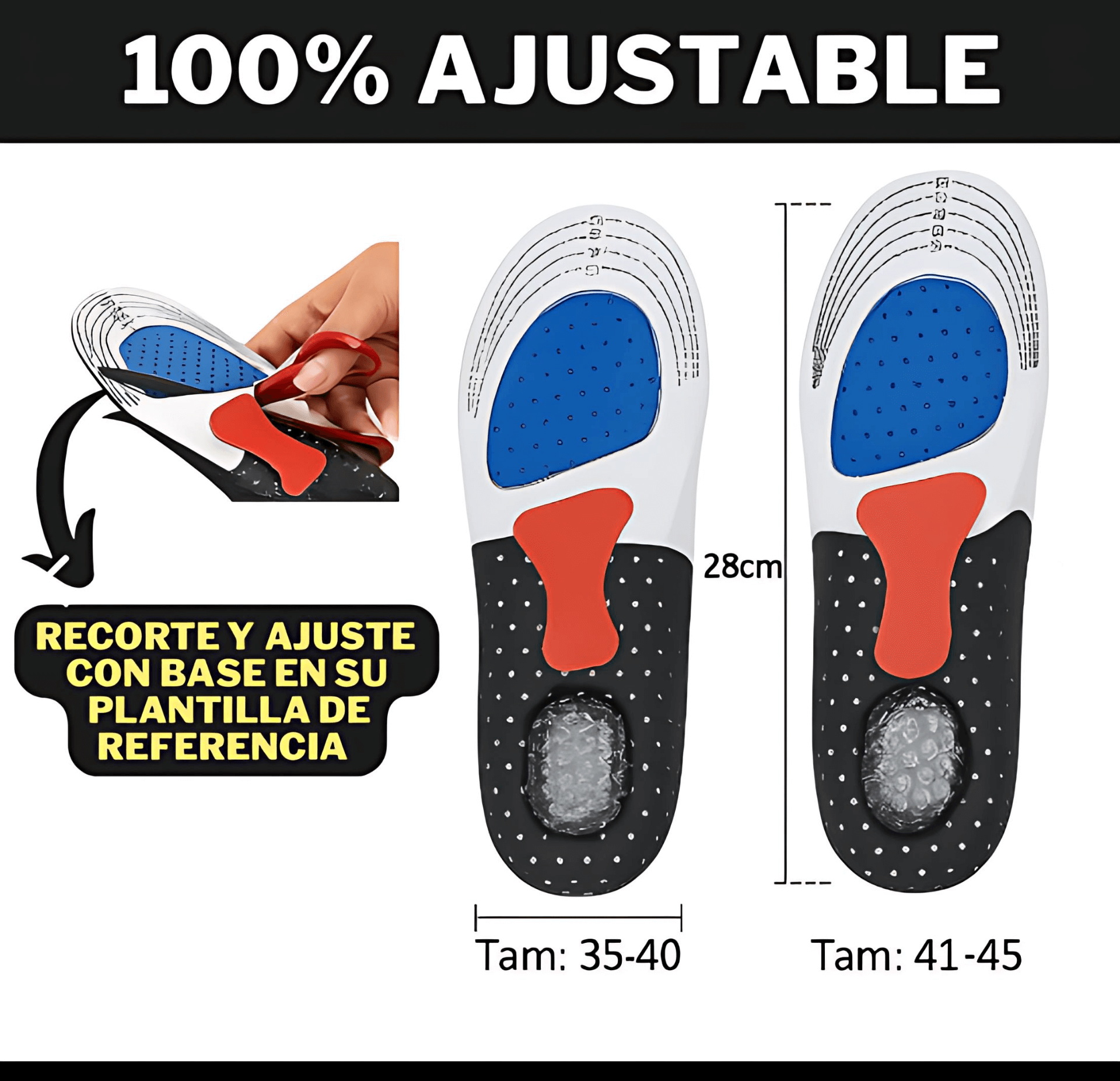 ¿Son compatibles con todos los tipos de zapatos? Sí, las plantillas son ajustables y se adaptan a zapatillas, botas, sandalias y más.